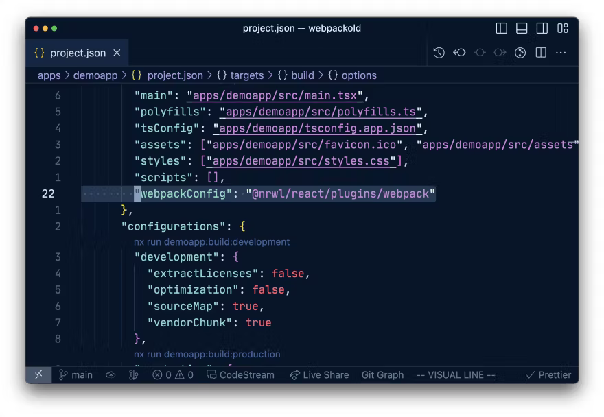 Inspired by our new Vite setup, which allows for a more modular configuration in the vite.config.ts, we wanted to bring some of the same flexibility to our Webpack setup as well. As such, now every Nx Webpack setup (e.g. a new React + Webpack based app) have a webpack.config.js in the project root. Old project are automatically migrated to this new setup.